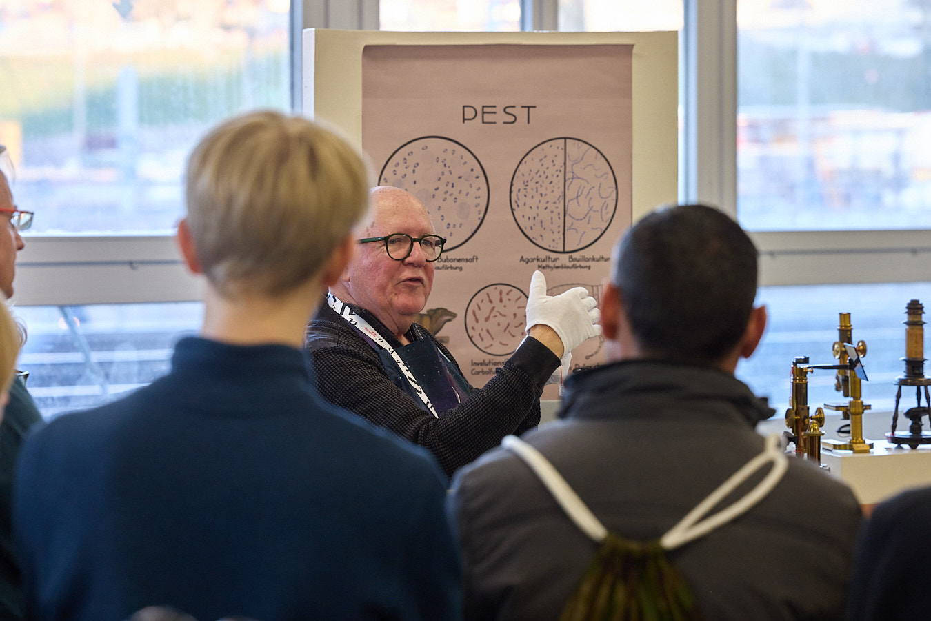 Grosses Interesse weckten auch unsere Fachführungen. Ob die technische Entwicklung der Eisernen Lunge, die Geschichte der Höhensonnen oder Neurochirugie, die Evolution der Hüftprothetik: der Austausch zwischen Publikum und Experten war intensiv und bereichernd. Auch die Einblicke in die Welt der Präparate und der Pflegegeschichte fanden grossen Anklang und machten die historische Bedeutung der (Berner) Medizin greifbar.